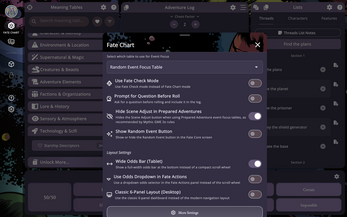 - Scene checks with Chaos Factor, including doubles-triggered drama and Prepared Adventure mode.
