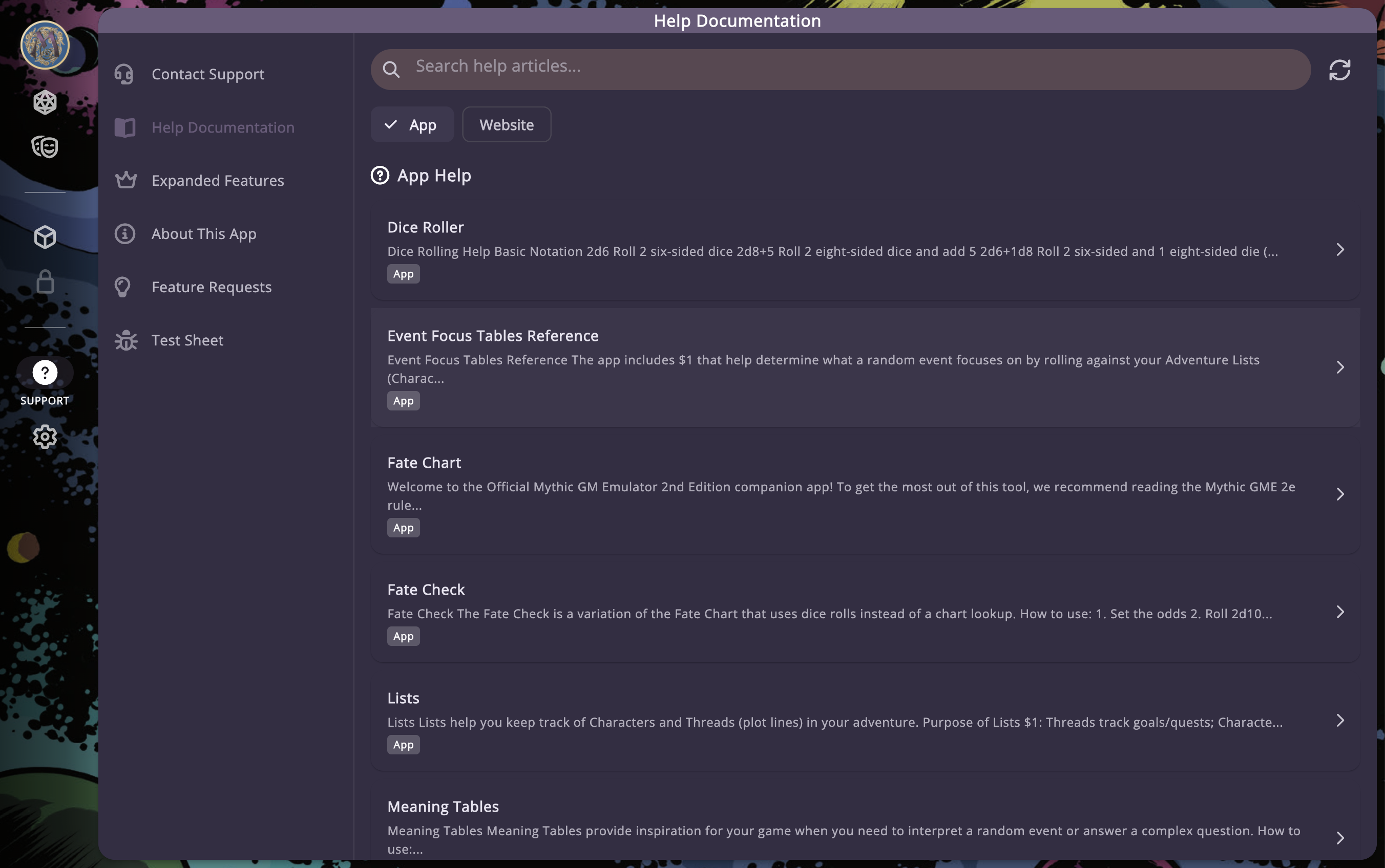 - 160+ tables included: 50 core tables from Mythic GME 2e plus expanded content from Variations, Magazines 1–61, and community favorites—all fully unlocked.